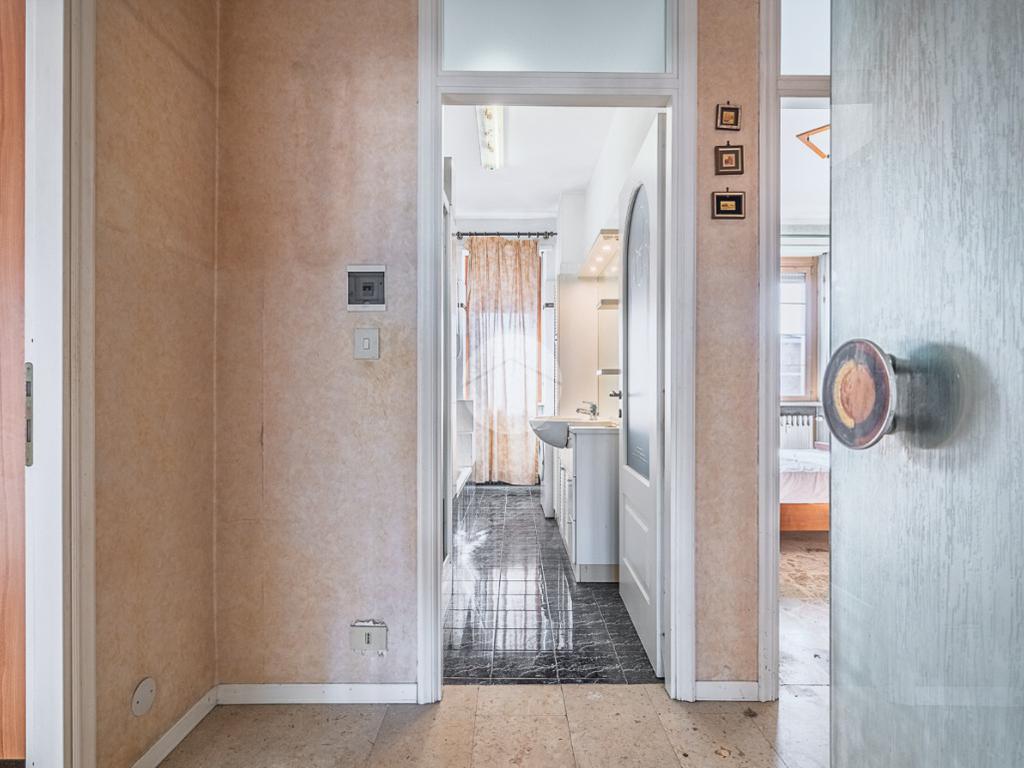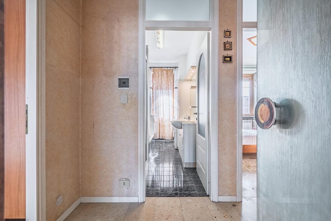 Il condominio è collocato in in una traversa della centralissima e servitissima Via Torino, ma allo stesso tempo in un contesto tranquillo e silenzioso. L'appartamento si trova al quarto ed ultimo piano ed ' servito da ascensore. Il portoncino blindato apre sul disimpegno che conduce a tutti gli ambienti dell'abitazione. Nella zona giorno vi è il tinello con cucinino di generose dimensioni. Il bagno risulta dotato di vasca, doccia ed è finestrato. Nella zona notte vi è la camera da letto matrimoniale con accesso al balcone. A completare la soluzione vi è l'ampio ripostiglio e la cantina al piano interrato.